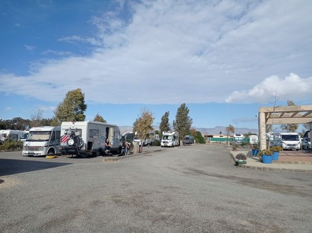 El área dispone de más de 60 parcelas niveladas, de 8,5 m de larga x 5,5m de ancha y además disponemos de parcelas XL de 10 m x 5,5 m, en un terreno cubierto por grava y totalmente vallado, con acceso a: